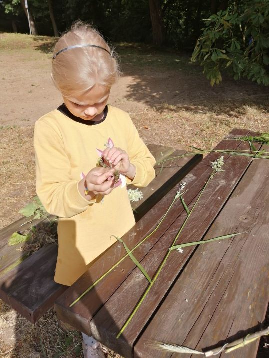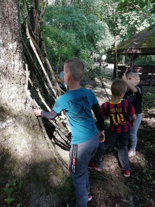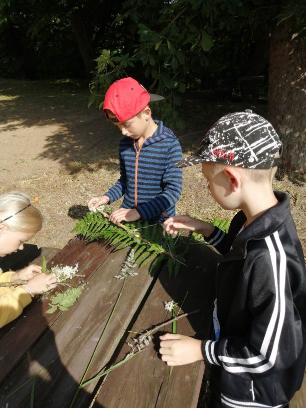 Mieli do wykonania pięć zadań: owijanie w bawełnę… patyków, rzucanie czarów (dzieci wypowiadały magiczne zaklęcia używając różdżki i łacińskich nazw roślin), wykonanie przyrodniczych obrazów, wyszukiwanie liter alfabetu ukrytych między drzewami oraz budowanie szałasu. Dzieci podczas zajęć w terenie zdobyły wiele cennych umiejętności, a przy tym wszyscy uczestnicy lekcji bawili się znakomicie!