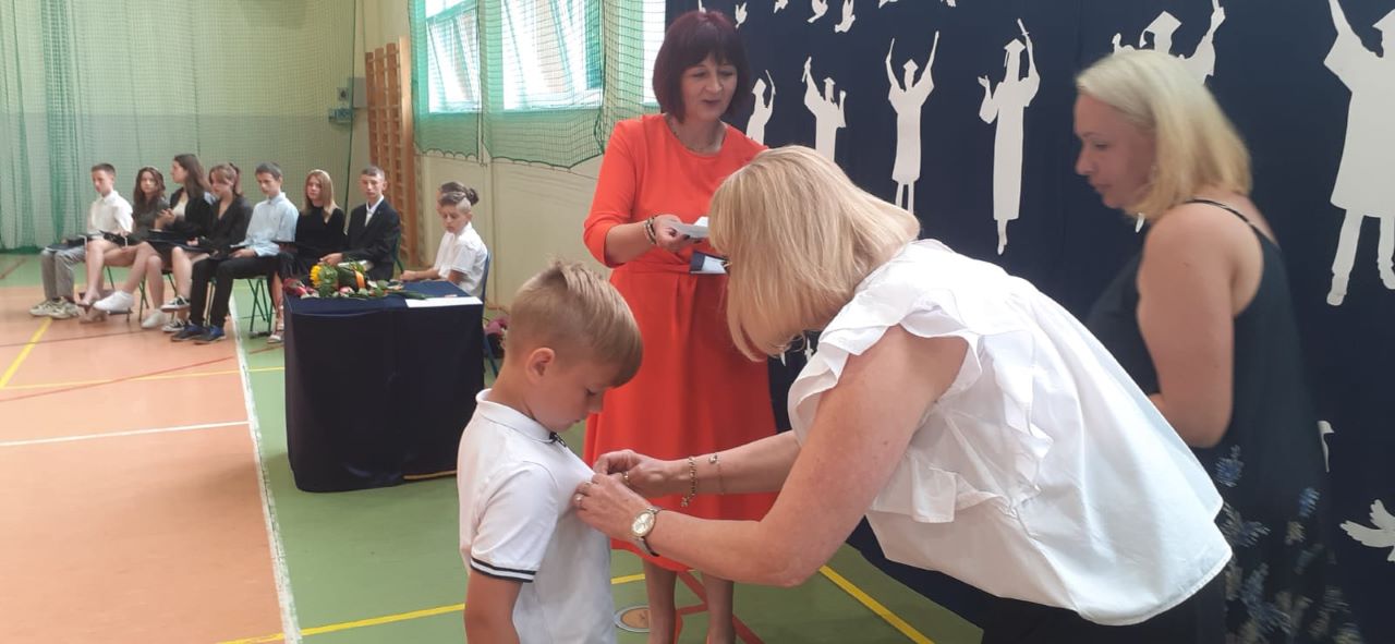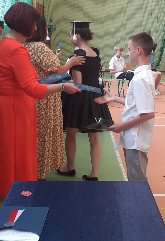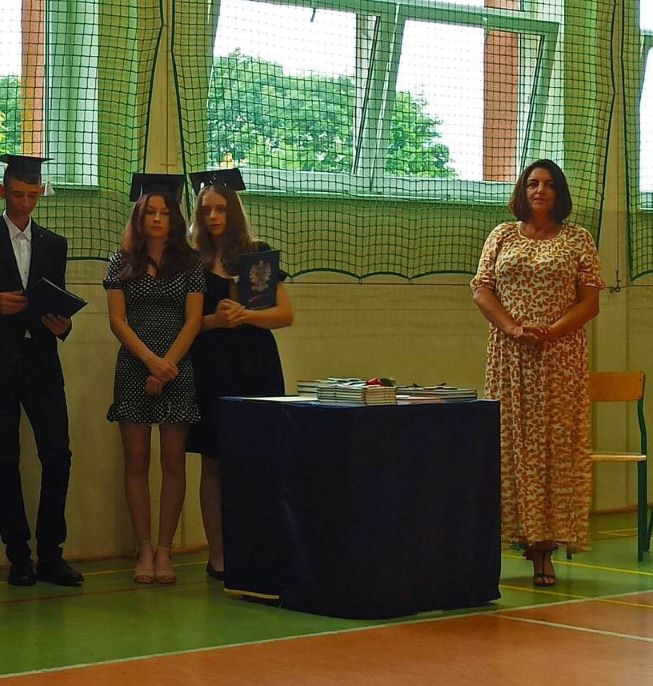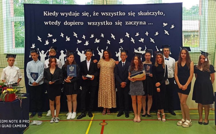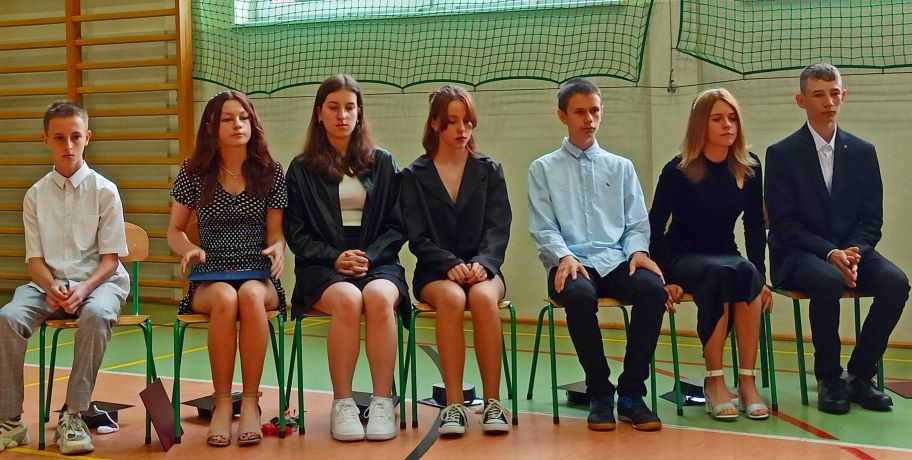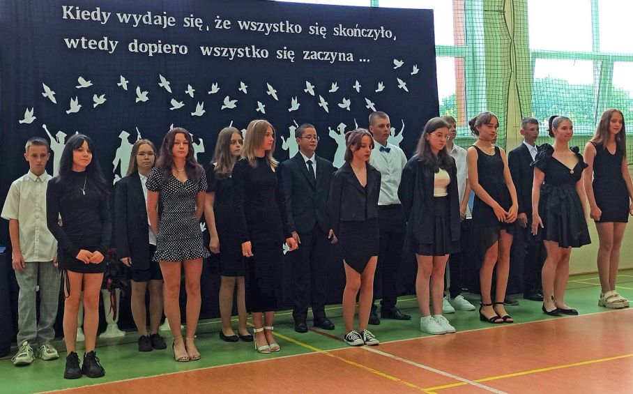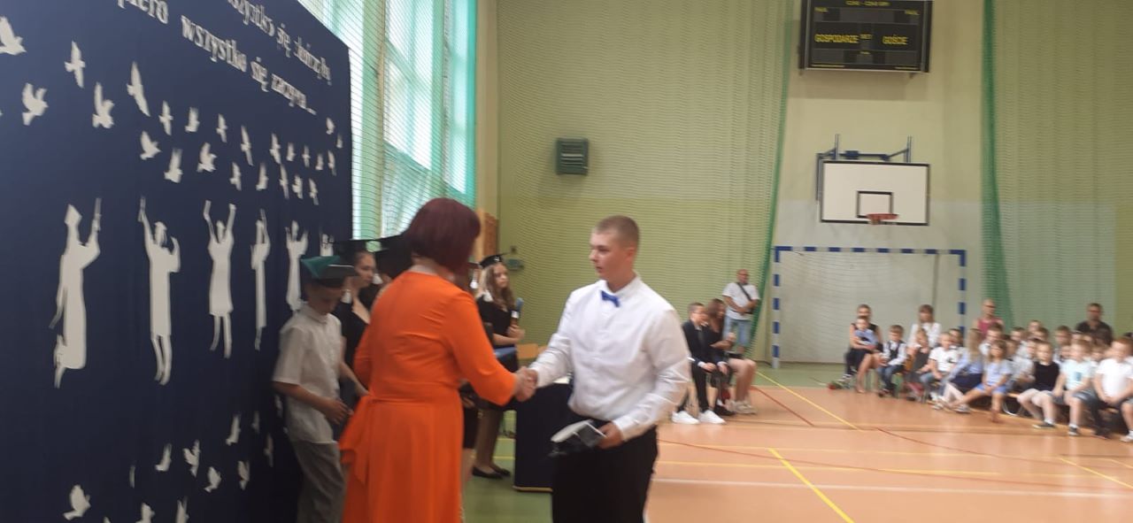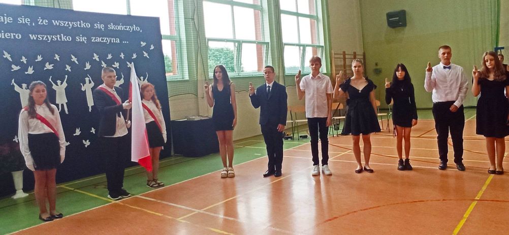 W piątek 23 czerwca 2023 roku uroczyście zakończyliśmy rok szkolny 2022/2023. Zgodnie z ustalonym wcześniej harmonogramem, o godzinie 9.00 na sali gimnastycznej zgromadzili się: pani Dyrektor, nauczyciele, zaproszeni goście aby pożegnać uczniów klasy ósmej – kończących edukację w naszej szkole. Absolwentom towarzyszyli dumni, a momentami nawet wzruszeni rodzice.