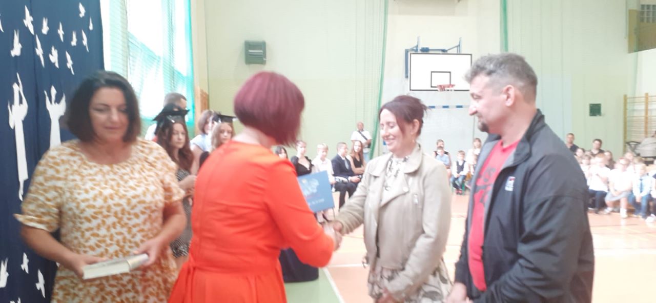 Oczywiście na takiej uroczystości nie mogło zabraknąć listów gratulacyjnych dla rodziców, podziękowań za ich zaangażowanie w życie szkoły.