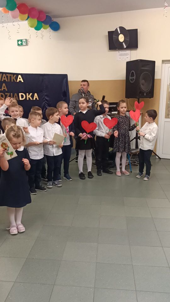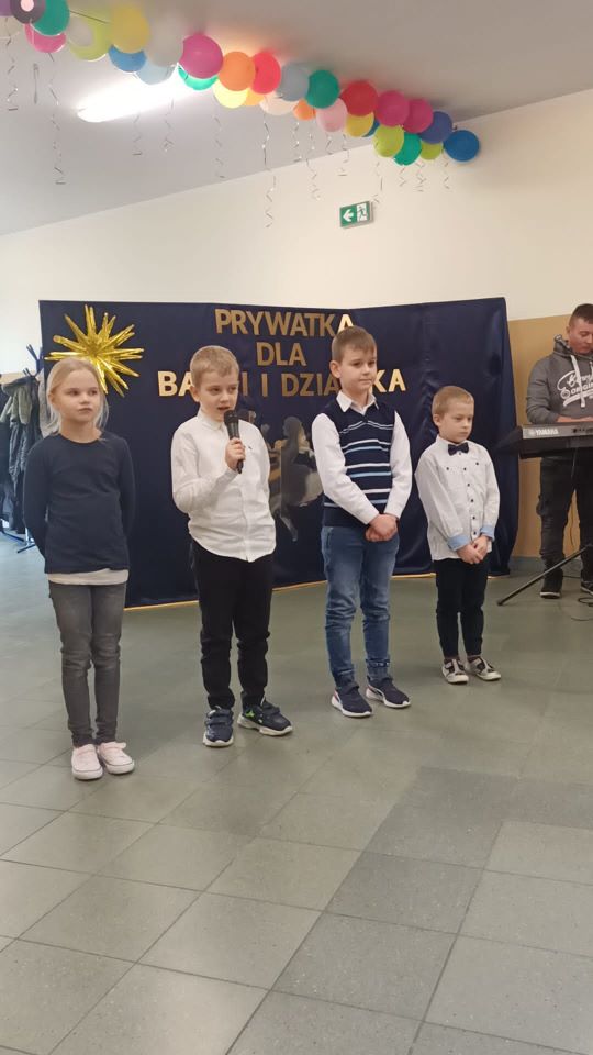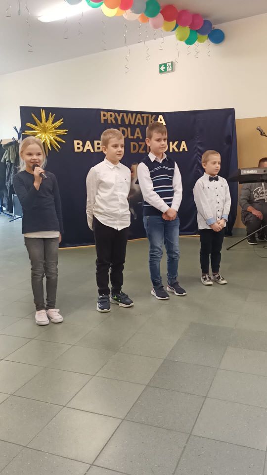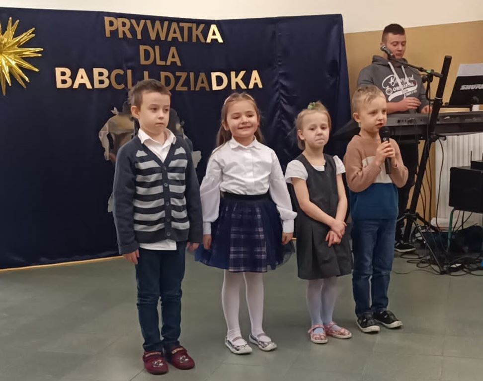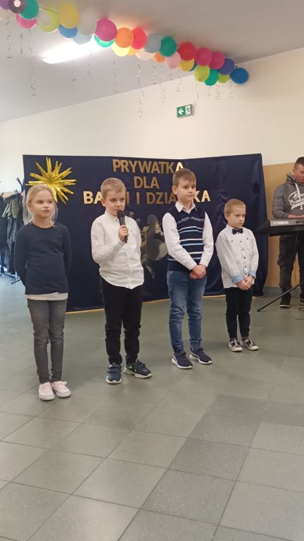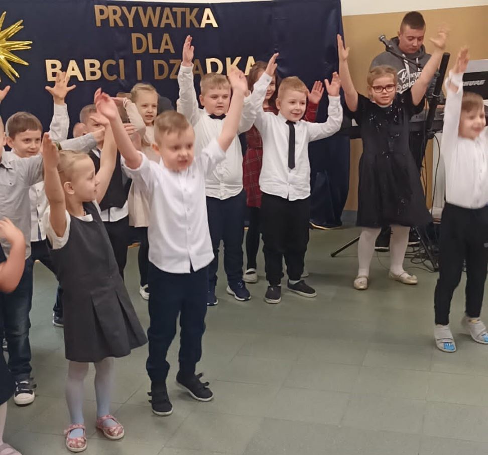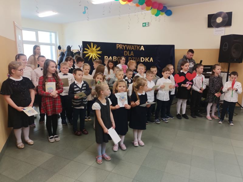 Dzieci od samego rana z niecierpliwością wyczekiwały zaproszonych gości. Licznie przybyli: Babcie i Dziadkowie, mieli okazję podziwiać swoje wnuczęta w specjalnie dla nich przygotowanych programach artystycznych. Dzieci zaprezentowały wiersze, piosenki, tańce oraz grę na instrumentach. O oprawę muzyczną zadbał absolwent szkoły - pan Arkadiusz Kartasiński, za co serdecznie mu dziękują organizatorki uroczystości.