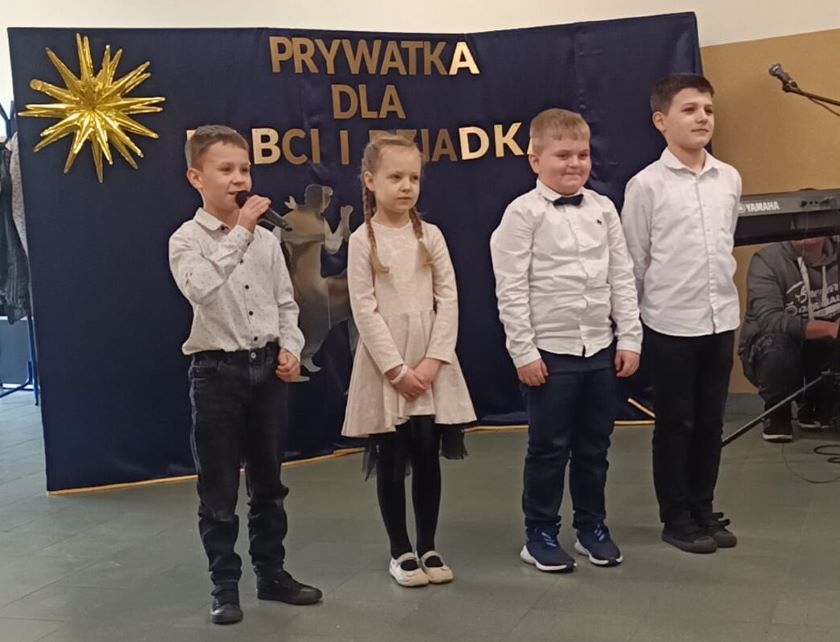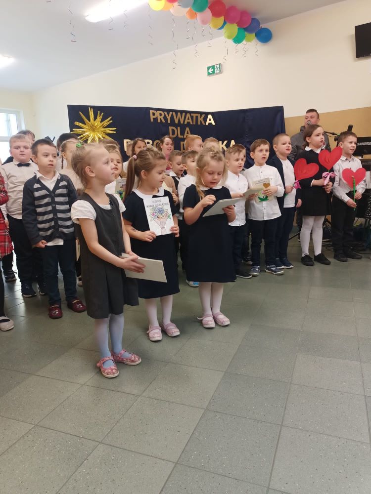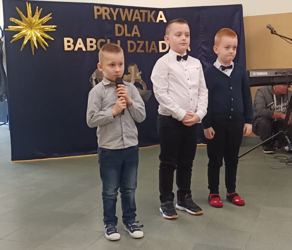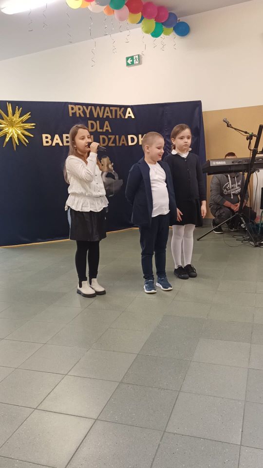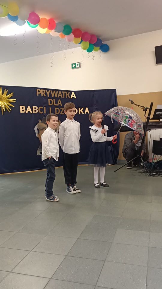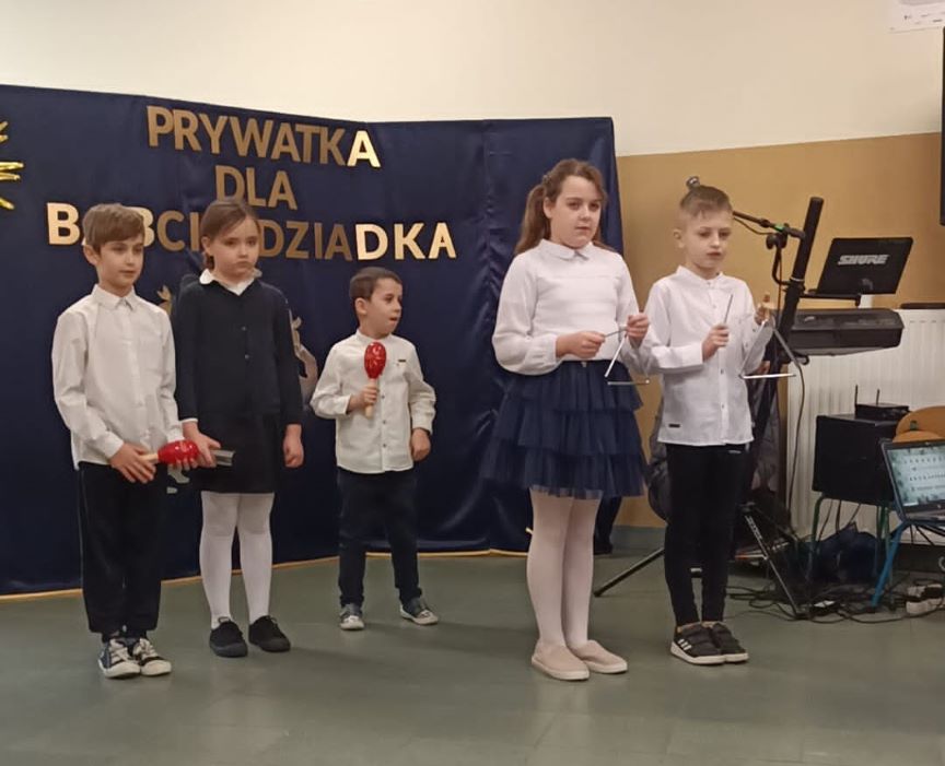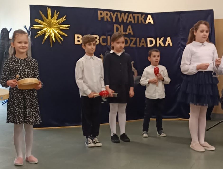 Dzieci od samego rana z niecierpliwością wyczekiwały zaproszonych gości. Licznie przybyli: Babcie i Dziadkowie, mieli okazję podziwiać swoje wnuczęta w specjalnie dla nich przygotowanych programach artystycznych. Dzieci zaprezentowały wiersze, piosenki, tańce oraz grę na instrumentach. O oprawę muzyczną zadbał absolwent szkoły - pan Arkadiusz Kartasiński, za co serdecznie mu dziękują organizatorki uroczystości.