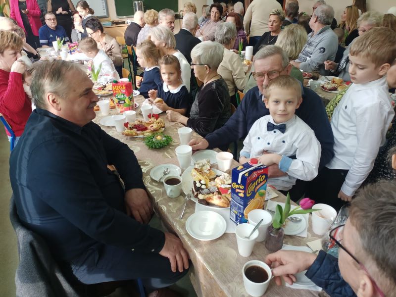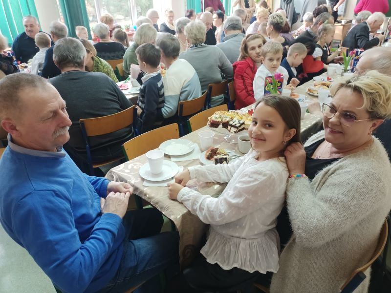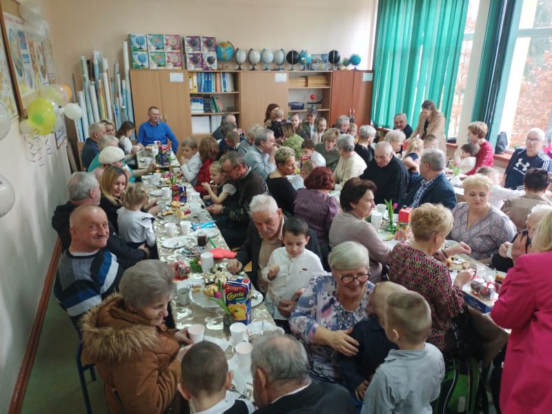 Na zakończenie części artystycznej dzieci wręczyły swoim ukochanym babciom i dziadkom własnoręcznie przygotowane laurki i upominki. Po występach seniorzy zostali zaproszeni na słodki poczęstunek przygotowany przez rodziców aby w szczególny sposób okazać swoim bliskim szacunek i po raz kolejny podziękować za miłość, cierpliwość i zrozumienie. To była naprawdę wyjątkowa uroczystość, pełna uśmiechu, radości i dumy. Szczęśliwe i rozpromienione twarze babć i dziadków dały wyraz tego, jak ważne są takie spotkania i chwile spędzone razem z wnukami.