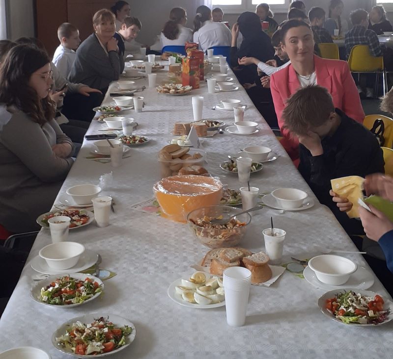 Gdy uczniowie zasiedli do wspólnego posiłku wszyscy poczuli się wielką, szkolną rodziną, która razem przeżywa święta.