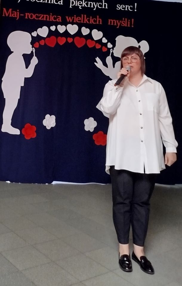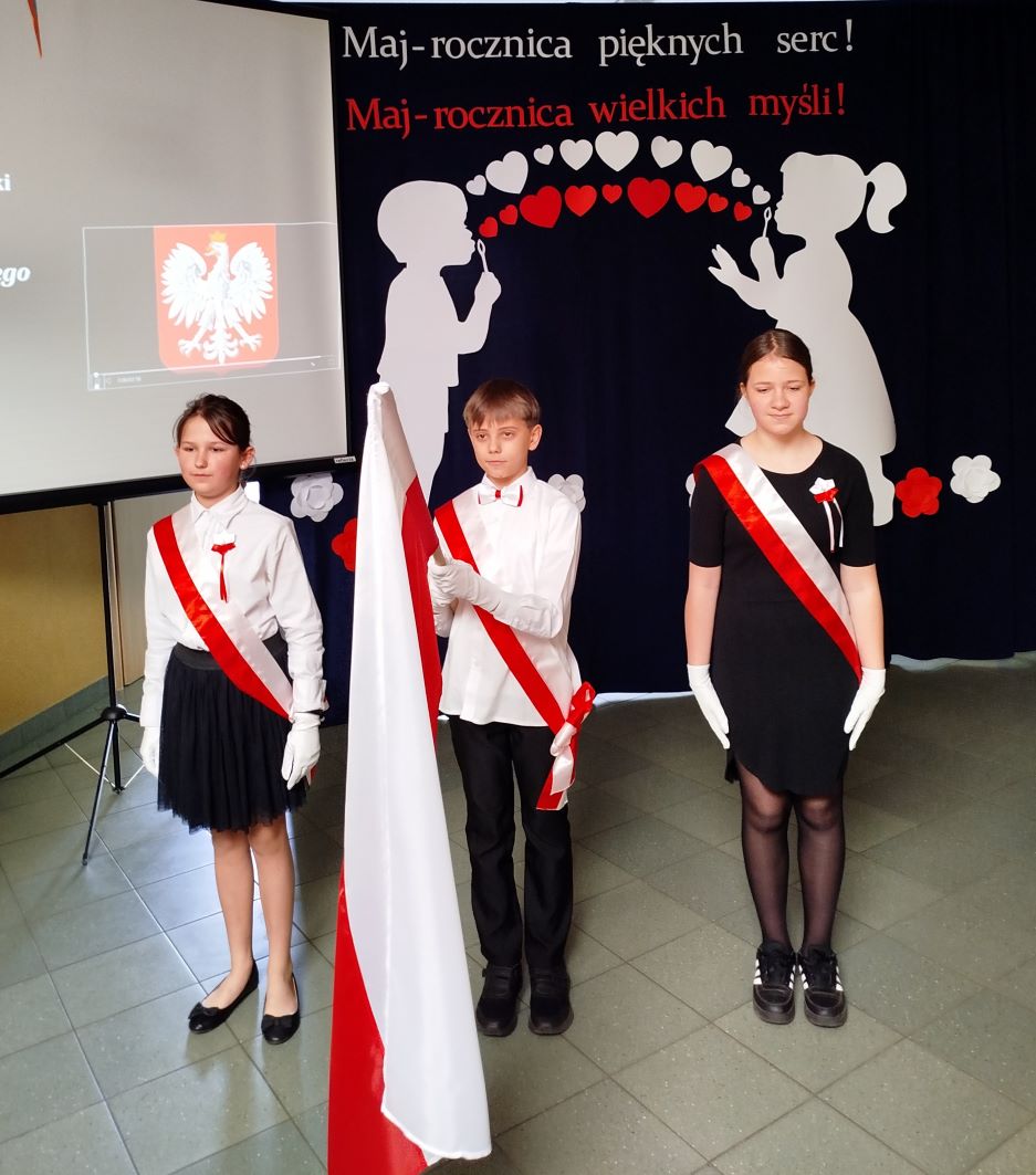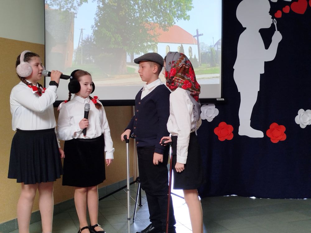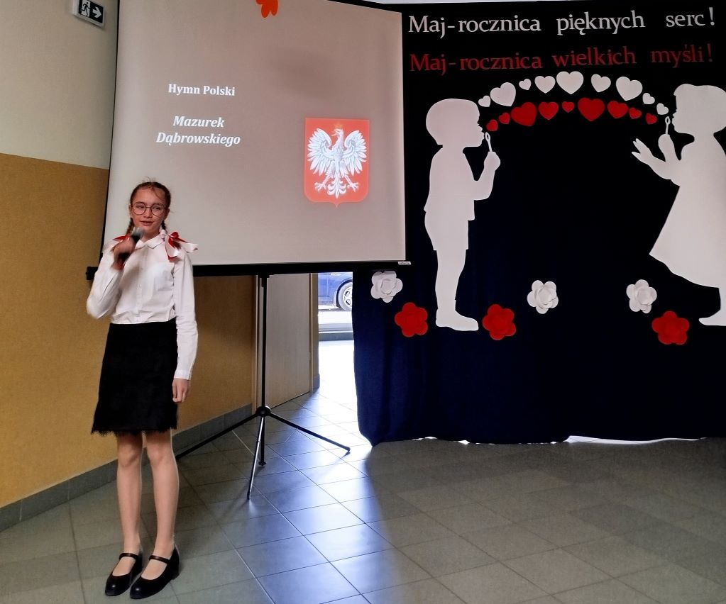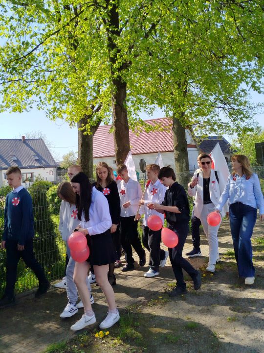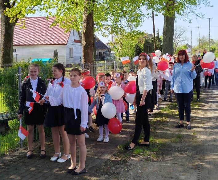 Po odśpiewaniu ,,Mazurka Dąbrowskiego” na wspaniały program z cyklu: ,,Nic, co polskie, nie jest mi obce” w wykonaniu klasy czwartej, zaprosiła zgromadzonych znana szkolna spikerka – Tatiana Nicpoń. Aby uczcić te piękne i wyjątkowe w naszym kalendarzu majowe święta, przenieśmy się na chwilę z gmachu naszej szkoły do telewizyjnych wysłanniczek Gminnego Studia ,,Nowinki”: Zuzanny Kalinowskiej i Zuzanny Matusiak, które zrelacjonowały nam, w jaki sposób Polacy o tych świętach pamiętają. Ich pierwszym rozmówcą był pracownik kolei, w postać którego wcielił się Łukasz Szczepaniak. Przybliżył on Święto Pracy. O Konstytucji 3 Maja opowiedziały rezolutne uczennice: Tatiana Nicpoń i Martyna Haratym. Kolejnymi rozmówcami było starsze małżeństwo: Emilia Machczyńska i Łukasz Szczepaniak, które wspomniało o rocznicy zakończenia II wojny światowej, czyli o Dniu Zwycięstwa. Zaś informacje o Dniu Flagi Narodowej przybliżyły nam aktywne studentki, tutaj: Martyna Haratym i Tatiana Nicpoń. W trakcie trwania spektaklu słowno – muzycznego mieliśmy okazję wysłuchania jakże aktualnego i ważnego utworu muzycznego Chłopców z Placu Broni pt. ,,Wolność” oraz wzruszającej pieśni w wykonaniu uczniów klasy czwartej pt. ,,Taki kraj”. Po tym chwytającym za serce muzycznym przesłaniu, z uśmiechem na ustach, z pięknymi biało – czerwonymi symbolami w dłoniach i elementami garderoby, wyruszyliśmy ścieżkami Piecnika na tradycyjny pochód majowy. Spotkaliśmy się z bardzo miłą reakcją mieszkańców i osób przejeżdżających przez miejscowość.