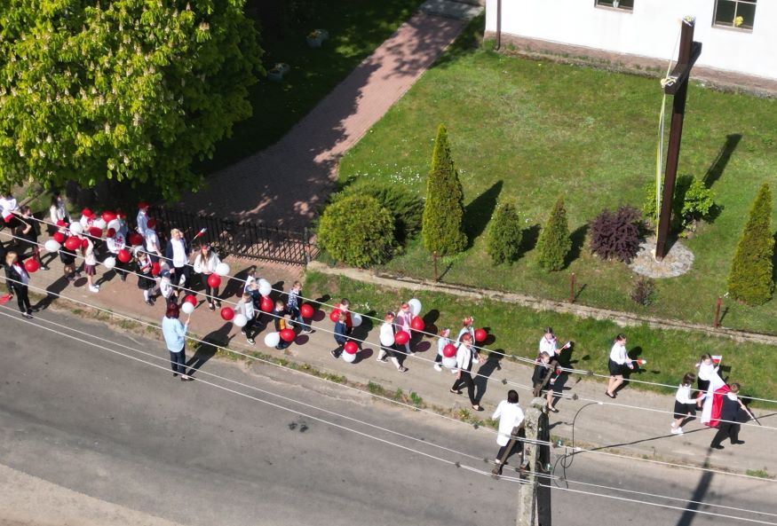 Nasze nastroje i entuzjazm podczas pochodu wspaniale oddaje fotorelacja, której autorem jest Pan Artur Kujawski – operator dronu, z którego ów zdjęcia i filmy powstały. Dziękujemy także Pani Monice Zawadzie, która jest nieustanną fotoreporterką naszych szkolnych poczynań.