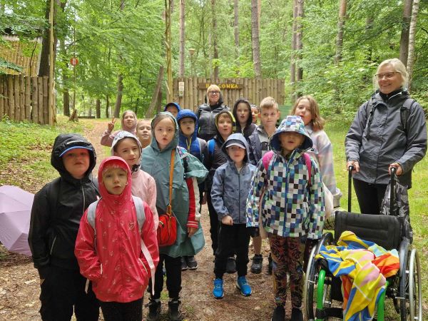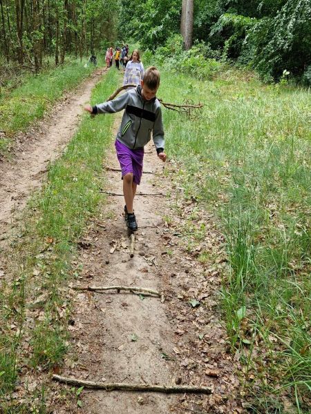 11 czerwca w ramach zakończenia naszych działań celebrowaliśmy zabawę i naukę na świeżym powietrzu. Zanim udaliśmy się w teren, podsumowaliśmy wspólnie nasze całoroczne zadania, obejrzeliśmy film edukacyjny na temat dbania o naszą planetę oraz bawiliśmy się w rytm piosenki ”Zielony dom” . Następnie udaliśmy się na II Wiosenny Bieg Po Zdrowie. Zorganizowaliśmy grę terenową podczas której rozwiązywaliśmy ekologiczne zagadki, segregowaliśmy odpady, szukaliśmy leśnych skarbów, zbudowaliśmy leśny tor przeszkód, odgadywaliśmy z zamkniętymi oczami jaki to materiał przyrodniczy oraz udało nam się stworzyć leśne obrazki z szyszek, kamieni, patyków i innych dostępnych materiałów. Metą naszej wyprawy była Stanica Harcerska „Harcówka” w Piecniku, gdzie zregenerowaliśmy siły. To był bardzo udany dzień, choć pogoda płatała nam figle.