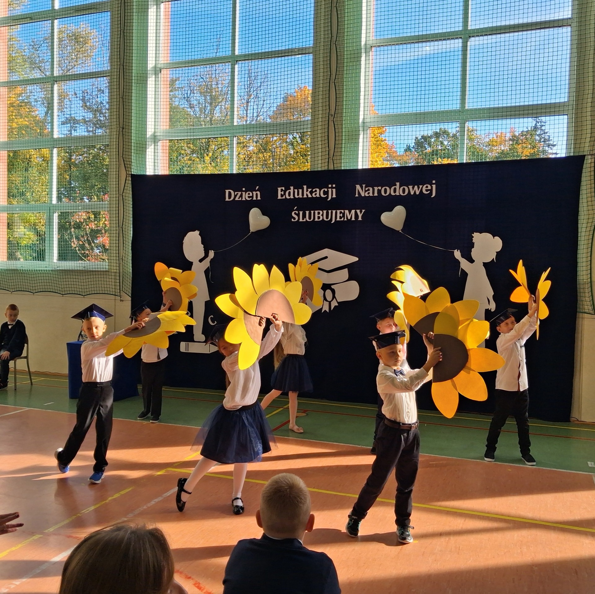 Następnie odbyła się część artystyczna przygotowana przez uczniów szkoły. Dzieci recytowały wiersze i śpiewały piosenki dedykowane nauczycielom, wyrażając w ten sposób wdzięczność za ich trud, cierpliwość i codzienną pracę. Występy uczniów wprowadziły wszystkich w radosny i uroczysty nastrój.